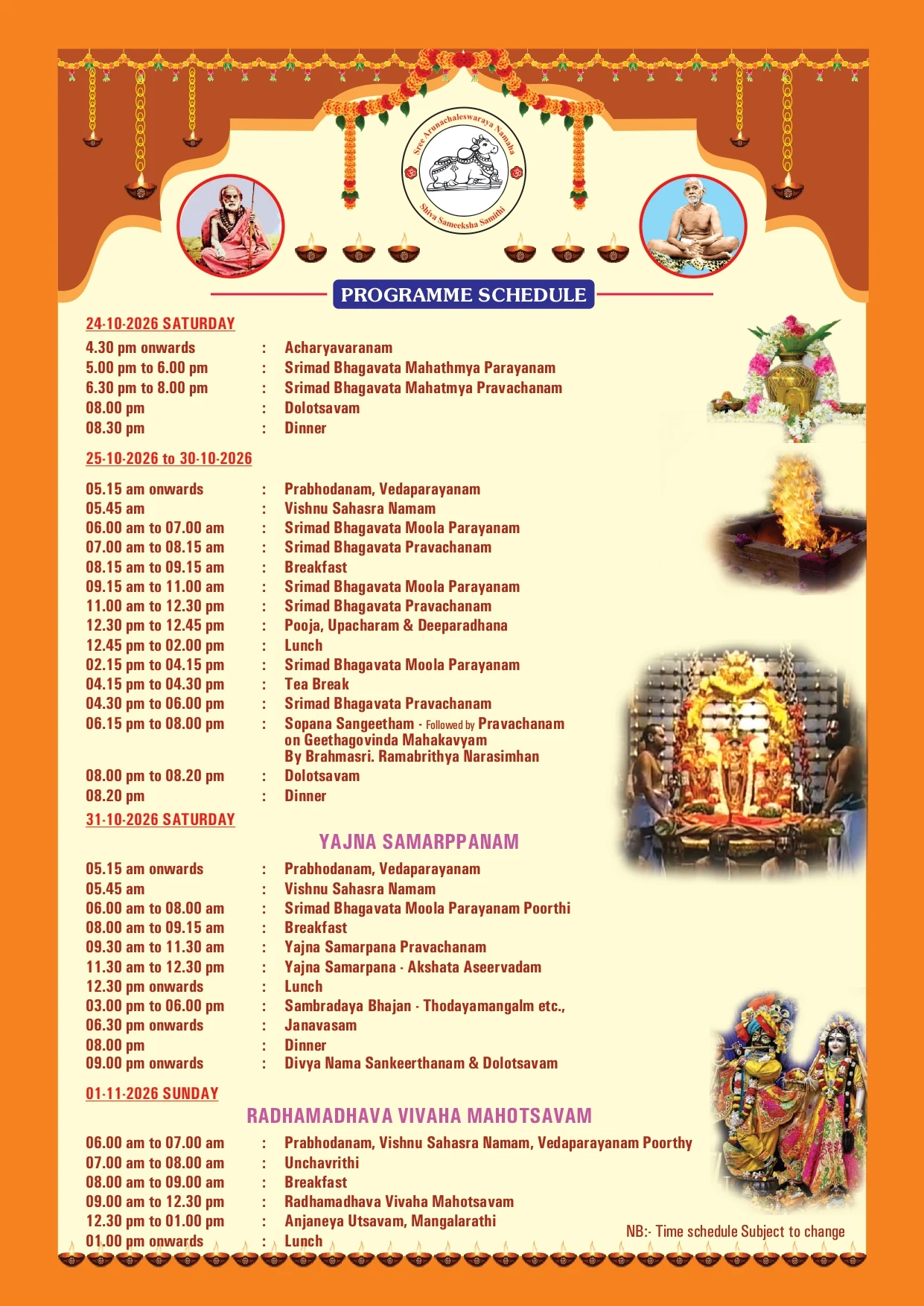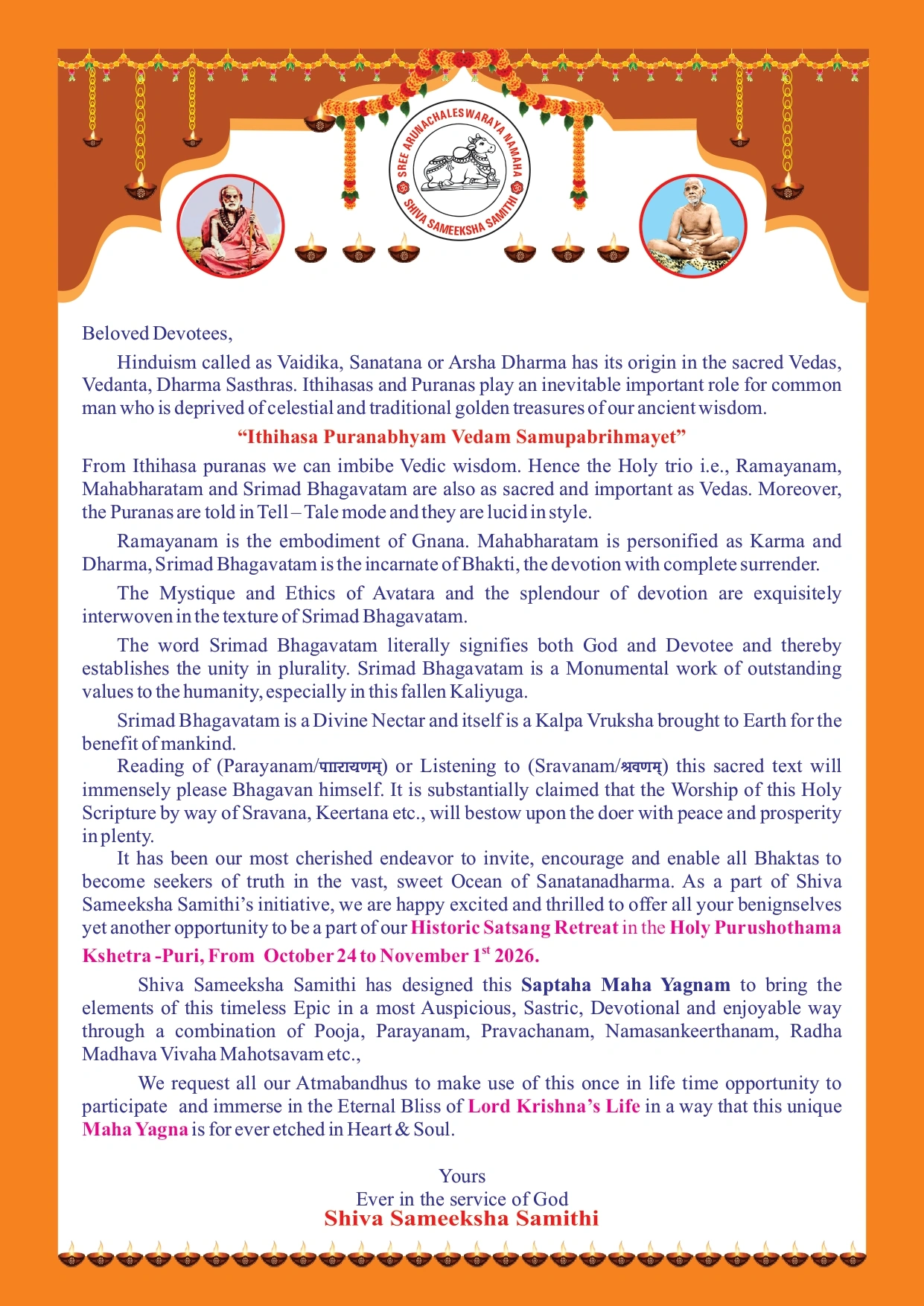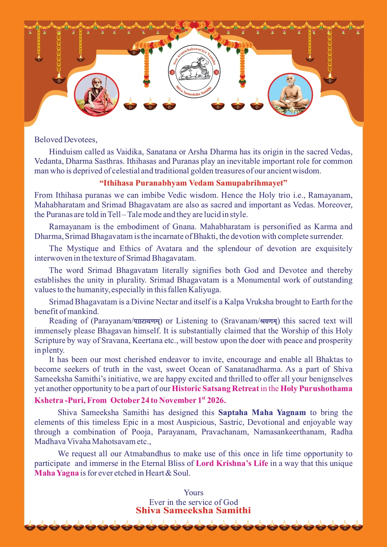 To contribute our mite in the restoration of various ancient Historic Temple whose dilapidated and deserted remains are the sole remainders of the past glory of our dharma, bhakthimargam and illustrious saints who propagated them